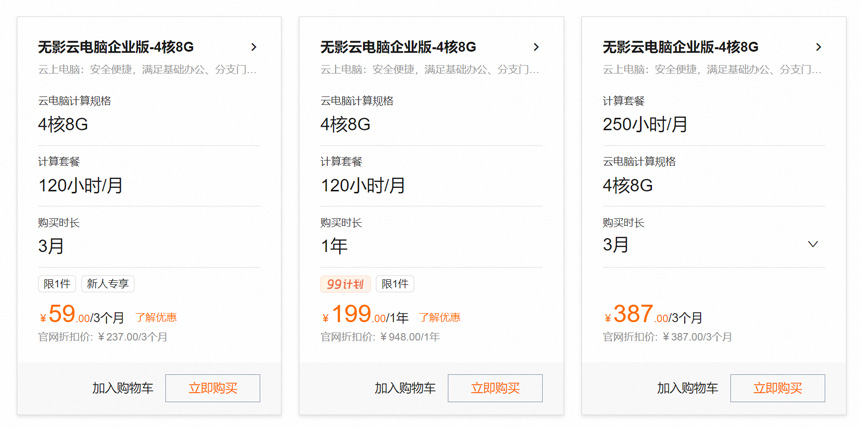 阿里云电脑企业版包月时长包有效期1个月,当月剩余时长不可转存至次月。企业版包月时长包的月度时长若在有效期内提前用完,超出时长部分将按照该规格按需价格扣费,月度消费到达该规格目录月价金额封顶,请确保账号余额充足。购买后云电脑默认开机,如10分钟内无连接,则自动关机/休眠以节省时长。